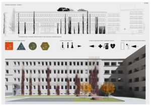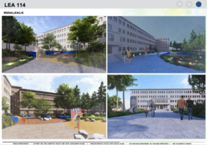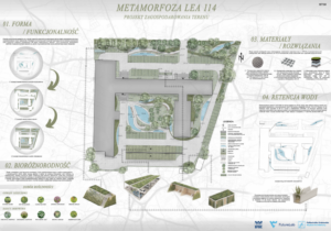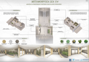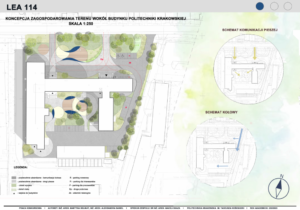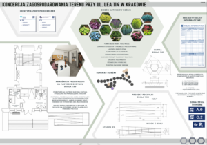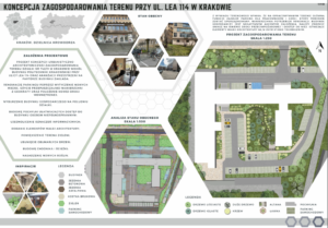 Przedmiotem konkursu było opracowanie koncepcji urbanistyczno-architektonicznej zagospodarowania terenu działki wokół budynku uczelni przy ul. Lea 114, a także aranżacja przestrzeni na parterze budynku.