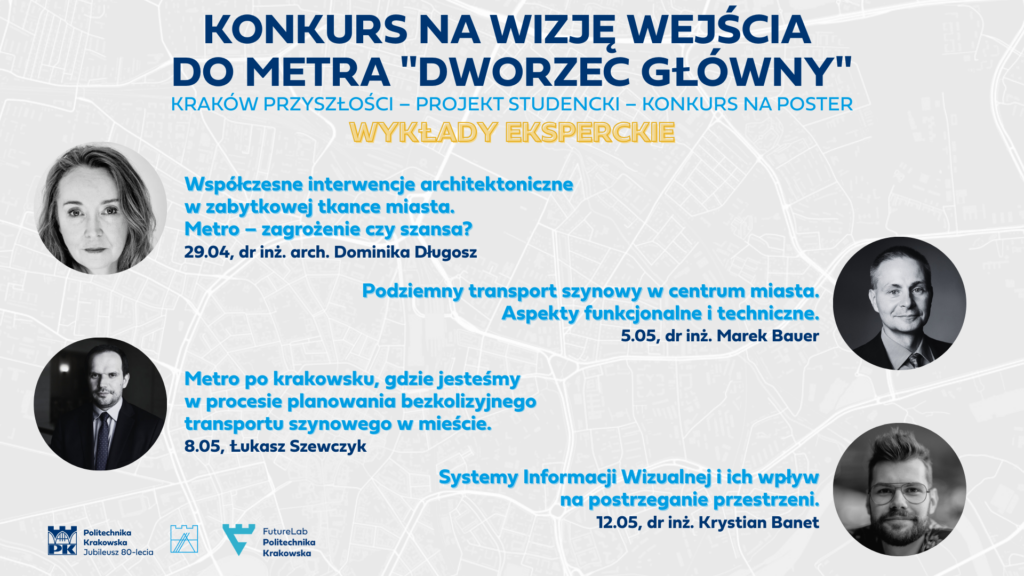 „Kraków Przyszłości – Projekt Studencki – Konkurs na Poster” to inicjatywa Wydziału Architektury Politechniki Krakowskiej, realizowana we współpracy z FutureLab. Celem konkursu jest opracowanie przez studentów posteru promującego ideę metra w Krakowie, ze szczególnym uwzględnieniem wizji wejścia do stacji metra przed budynkiem Dworca Głównego. Partnerem wydarzenia jest Urząd Miasta Krakowa, a Patronat objął Prezydent Miasta.